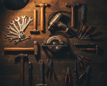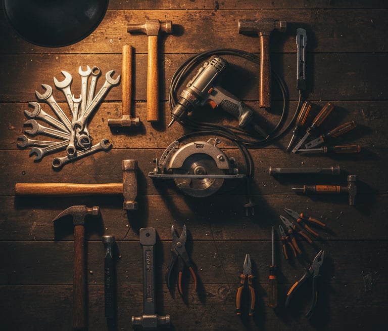 Industrial-grade tools and equipment for maintenance, assembly, and on-site project work.